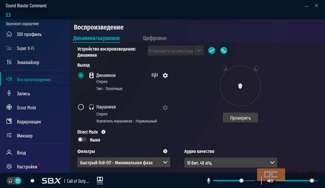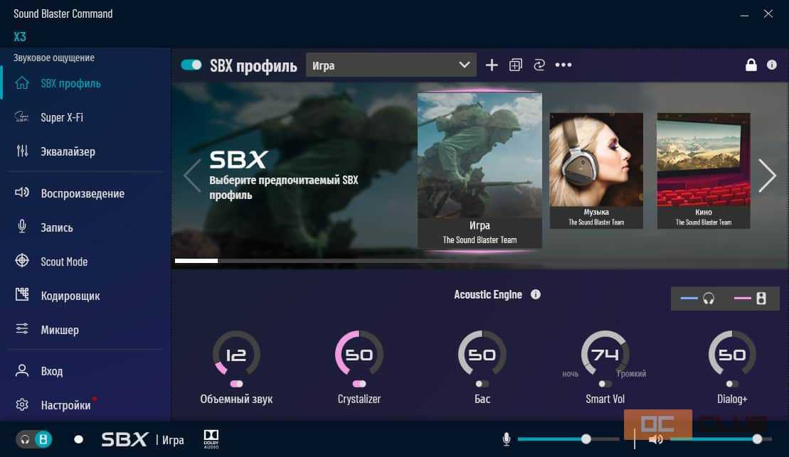 Возможности Sound Blaster Command впечатляющие. Есть огромное количество предустановок вроде оптимизации звука под различные жанры игр, под музыку, фильмы и т.д. Более того, предусмотрены профили под определённую игру. Но по сути под “профилями SBX” подразумевается банальное виртуально 7.1 со всеми вытекающими.