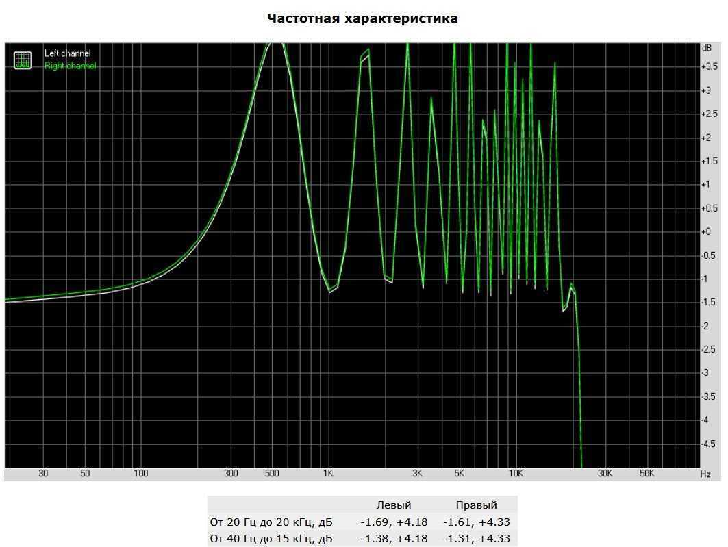 И это оказалось правдой, вот такой график АЧХ мы получили на настройках по умолчанию. Правда ужасно? Изменения около 5 дБ, это уже заметно на слух.