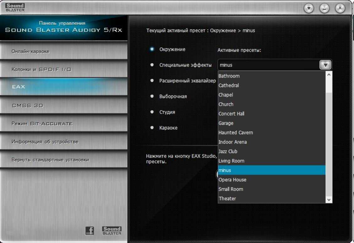 Множество готовых пресетов для разных режимов: окружение, студия, караоке.